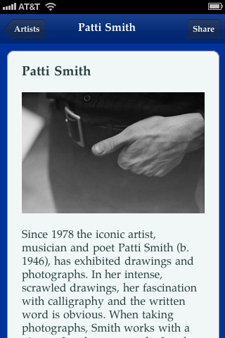 Intuitive navigation to quickly find information about exhibitions and artists.